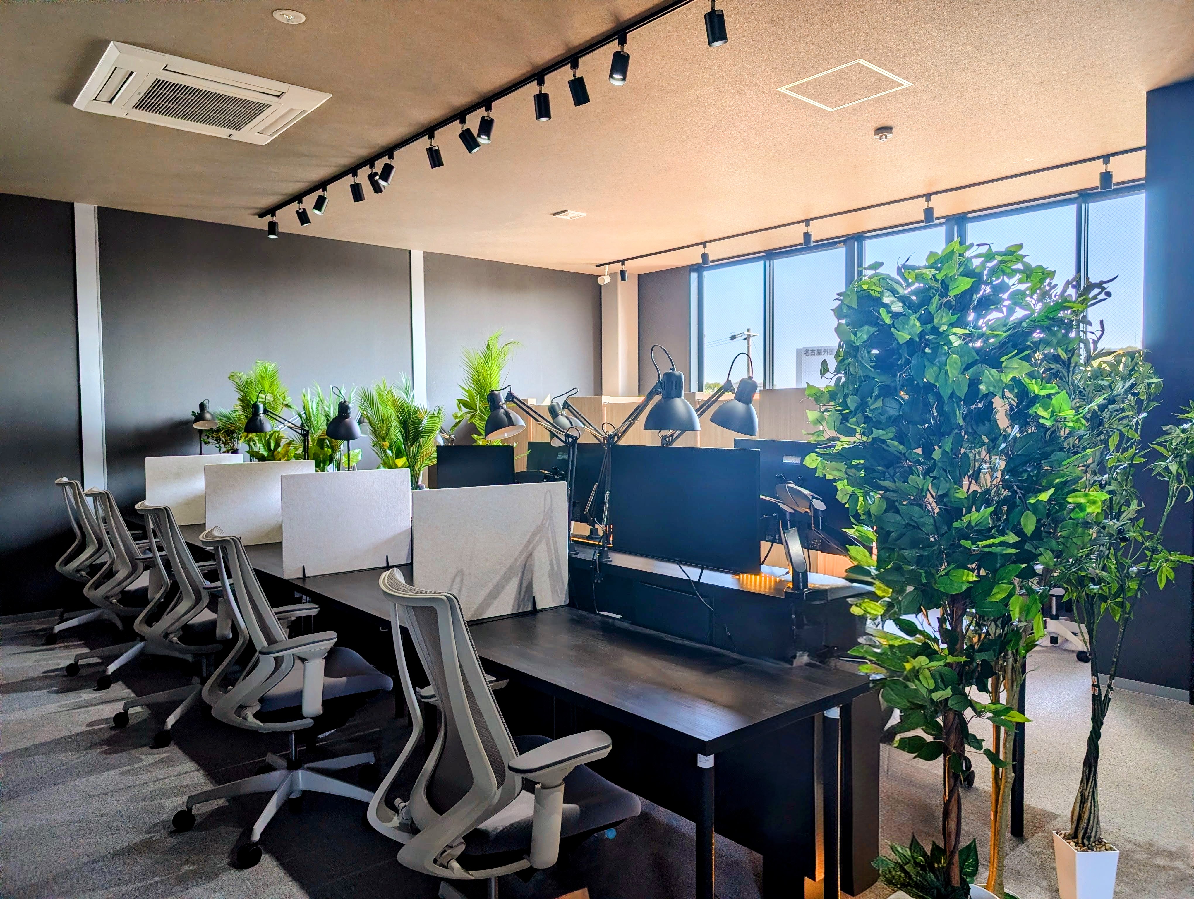 フリーアドレス席2。緑視率を高めて集中力UP!