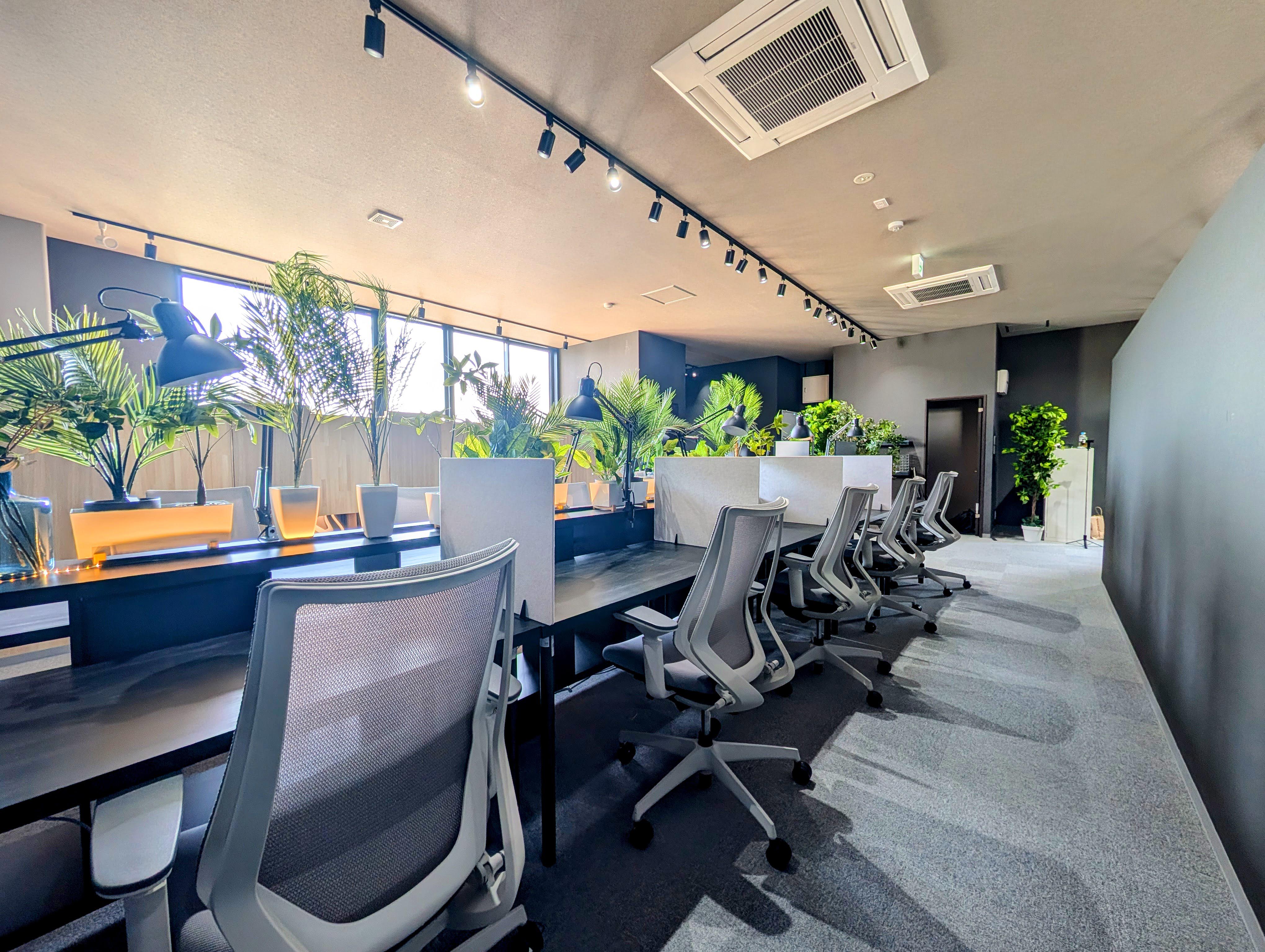全席に電源を完備したフリーデスクと、静かで落ち着いた雰囲気の空間が特長です。