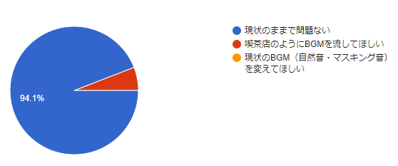 喫茶店で流れるような歌詞のないBGMなどのほうが需要があるかと思いましたが、現状のまま自然音・マスキング音で稼働したいと思います。