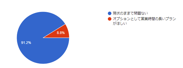約1割の方が営業時間の延長オプションがあれば。との回答を頂きました。