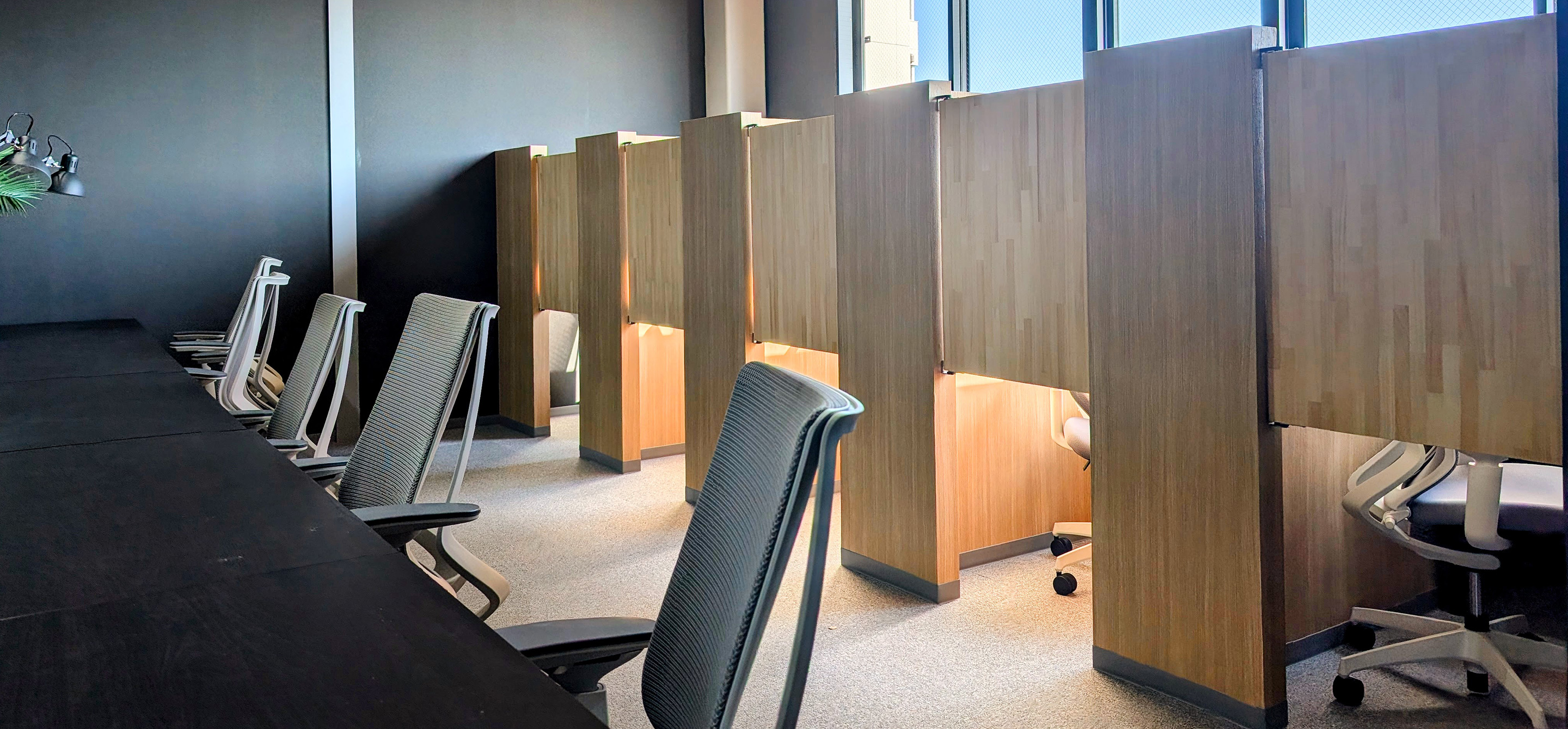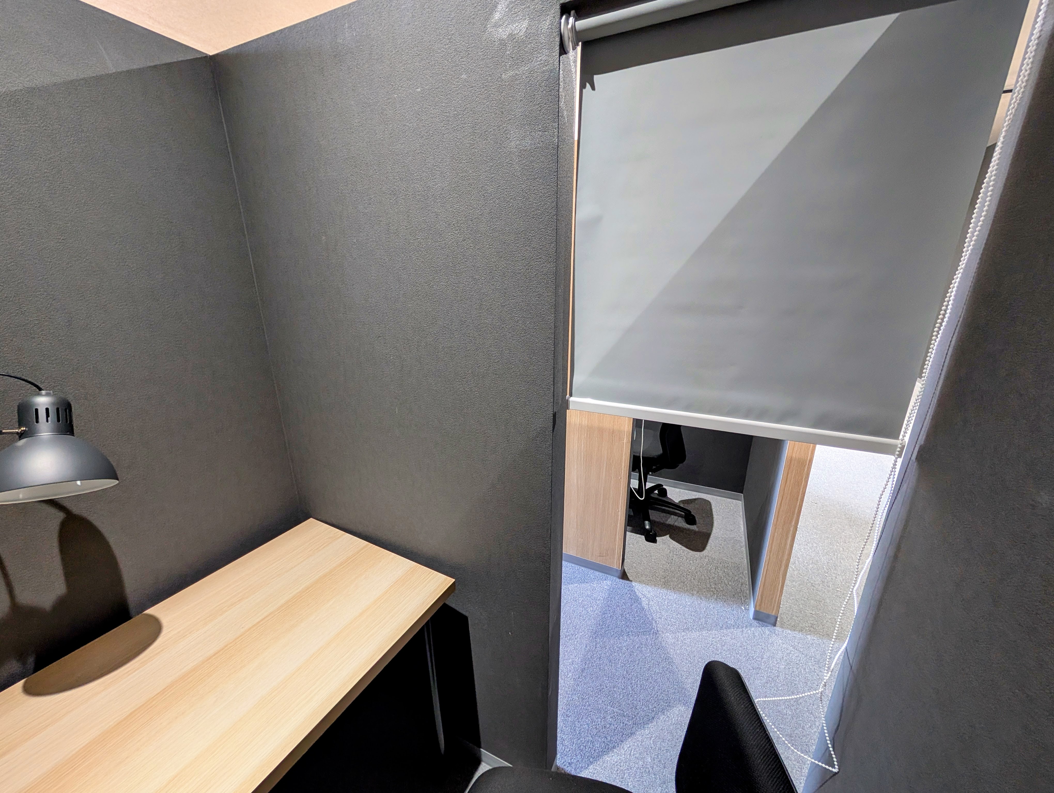 「急な会議が入ったけれど、外に声が漏れるのは困る」というシーンでも安心。遮音性に配慮した個室は、リモートワーカーから絶大な支持を得ています。